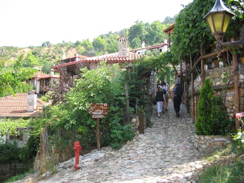 Yildez en Dagmar branden een kaarsje in Pantaleimonas